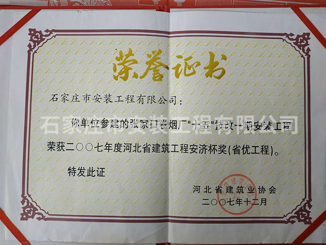 2007年度河北省建筑工程安濟(jì)杯獎(jiǎng)(省優(yōu)工程)